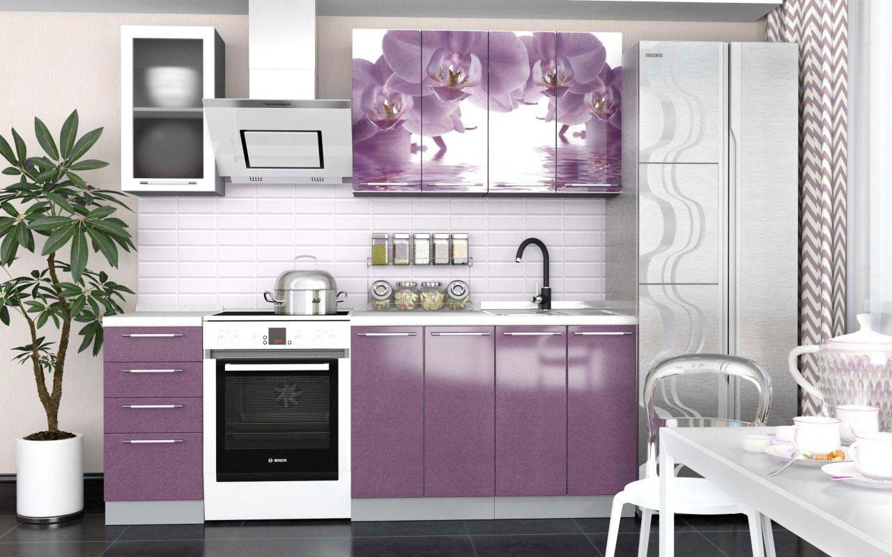 Фиолетовая кухня из пластика с рисунком