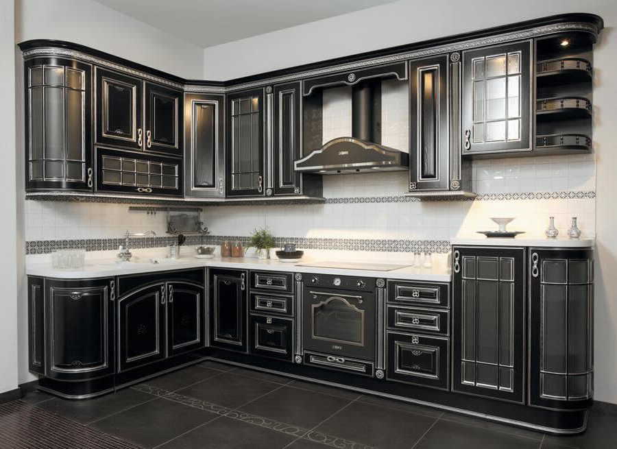 Главная / Наши работы / Кухни / Кухня из патинированной пленки черный ясень 163
