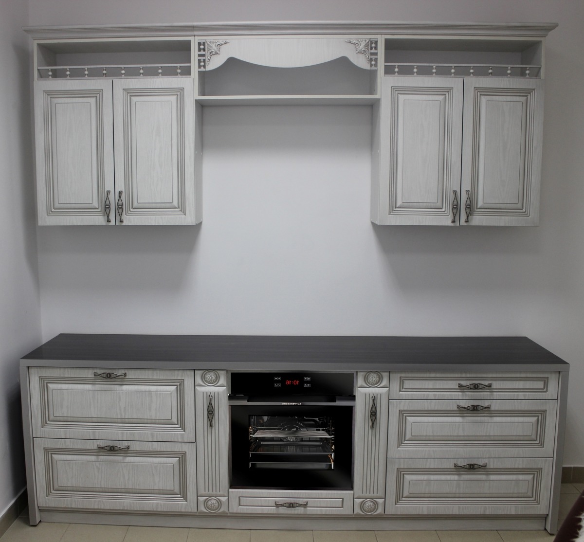 Главная / Наши работы / Кухни / Кухня патинированная пленка белый ясень 164