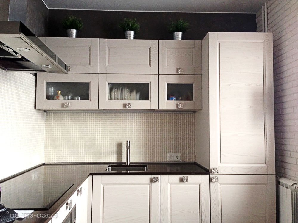 Главная / Наши работы / Кухни / Кухня из экошпона белая 140