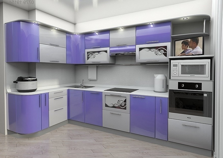 Главная / Наши работы / Кухни / Сиреневая кухня из пластика